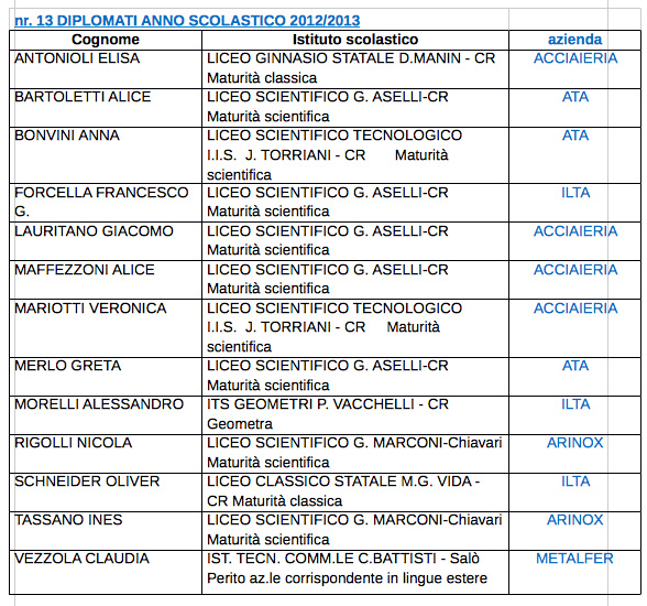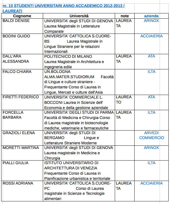 Consegnate le Borse di studio del Gruppo Arvedi a 24 studenti
