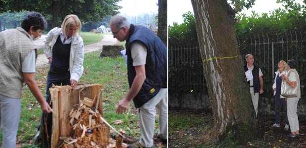 Alcuni di questi pioppi, soprattutto quelli collocati in prossimità di via Corte e via Campestre, sono infestati dall’edera e presentano numerosi carpofori fungini di varie specie, agenti di carie e di decadimento dei tessuti legnosi. Sugli esemplari più compromessi, nei giorni scorsi, i tecnici hanno deciso di effettuare un’indagine specifica utilizzando un particolare strumento in grado di penetrare, non in modo lesivo, all’interno dei tessuti legnosi, e di produrre un grafico che misura la densità del legno.