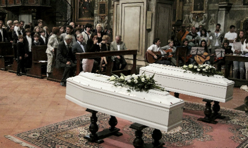 Una comunità attonita ha dato l'ultimo saluto a Matteo e Greta