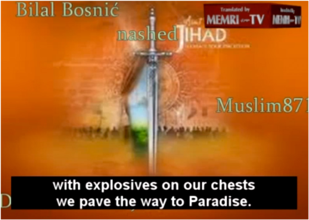“Con esplosivi sul nostro petto prepariamo la nostra strada verso il paradiso”. “Se Allah vuole, l’America sarà distrutta”. “Sappi, oh Bush, che la Bosnia sarà la vostra fine”. Sono stralci di canti intonati da Bosnic, comparsi su internet il 21 luglio 2011 (per quanto riguarda la frase con riferimento all’esplosivo) e il 22 maggio 2009 (per quanto riguarda le altre due frasi). Nel primo caso l’intervento è testimoniato da un file audio, nel secondo anche da un video in cui si nota Bosnic circondato da una folla di persone. I file sono stati ripresi e ripubblicati con traduzione in inglese nel giugno del 2012 dal Middle est media research institute.