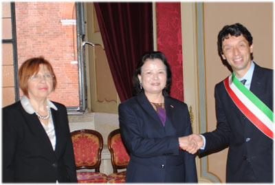 “Per noi è un grande onore averla qui – ha detto il sindaco accogliendo l’ospite -. Ci sono moltissimi gioielli nella nostra città. Immaginiamo possibili collaborazioni culturali ed economiche tra i nostri paesi e le nostre città. Per noi le sinergie sono fondamentali: è molto importante, anche nella nostra città, creare collaborazioni tra culture diverse e fuori dalla nostra città costruire collaborazioni culturali e turistiche con altre città come Mantova, Piacenza, Brescia, Venezia”.