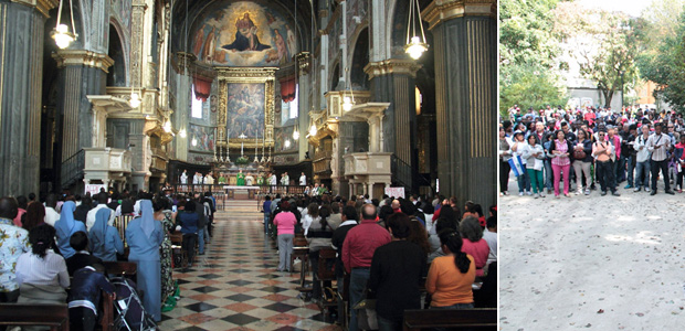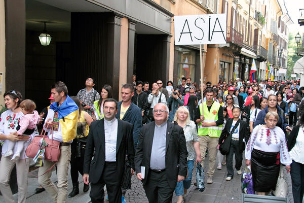 Dopo il pranzo i pellegrini si sono spostati, ordinatamente, verso la Cattedrale, per partecipare alla celebrazione eucaristica, presieduta dal vescovo Dante Lafranconi e preceduta dall’accorato saluto del sindaco di Cremona, Gianluca Galimberti. Suddivisi tra i quattro continenti – Europa, Asia, Africa e America, i pellegrini hanno partecipato con entusiasmo alla celebrazione, coordinati dai volontari Caritas. Una messa senza dubbio diversa da quella a cui la comunità cremonese è abituata ad assistere, animata dai vari gruppi etnici delle diocesi lombarde: peruviani, filippini, ghanesi,ucraini, ecc. Musiche allegre, chitarre, canti e addirittura danze hanno portato nuova linfa alle serie mura della Cattedrale cremonese.