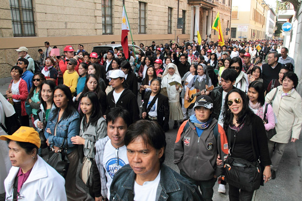 Particolarmente pregnante la predica del vescovo, che ha rimarcato “l’universalità dell’umanità, di cui questa assemblea è rappresentanza”. “Il motivo per cui ci troviamo uniti nell’Eucarestia è perché Dio ha compiuto un gesto, mandare suo figlio tra noi, che non possiamo dimenticare, così come non possiamo dimenticare ogni gesto di premura, attenzione e cura nei nostri confronti” ha detto il vescovo, richiamando l’attenzione sull’importanza dell’unione tra popoli. “La venuta di Gesù ha trasformato un popolo unico in un popolo multietnico, chiedendo ai discepoli di portare la Parola di Dio in tutte le nazioni. Un popolo unico, costituito da tutti i popoli della terra, di cui Dio si prende cura. La cura che Dio ha nei confronti del suo popolo è la stessa che ognuno ha nei confronti dell’altro. Tutti siamo membra dello stesso corpo. Ecco perché mi sembra appropriato il tema di oggi, ‘Chiesa senza frontiere’. Che frontiere possono esserci tra le parti di uno stesso corpo? Quando noi eleviamo delle frontiere è perché manchiamo di stima nei confronti degli altri, dando un volto ferito a questa Chiesa e a questo corpo del Signore. Qui non ci possono essere divisioni”.