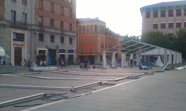 Preparativi in corso in piazza Stradivari e piazza Duomo per la Maratonina 2014