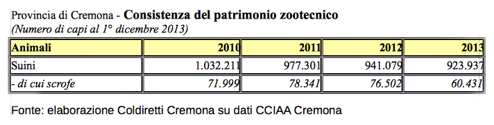 Un altro colpo alla suinicoltura, settore importante per il territorio cremonese, che già deve fare i conti con il calo di animali allevati degli ultimi anni, arriverebbe dal prosciutto senza carne di maiale e con più acqua e additivi chimici sinora vietati, a danno dei consumatori e degli allevatori. A lanciare l’allarme è l’associazione del mondo agricolo Coldiretti, sulla base della proposta di schema di decreto ministeriale che rivede la normativa sulla preparazione dei salumi, introducendo “una serie di allucinanti novità, che senza dubbio avranno riflessi negativi sugli allevamenti di maiali”. Un fatto particolarmente grave per una terra come Cremona, culla della suinicoltura lombarda, che vanta oltre 920mila capi allevati.