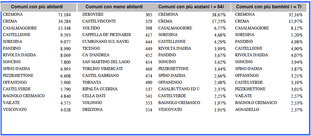STRUTTURA DEMOGRAFICA – CIRCONDARIO CREMONA