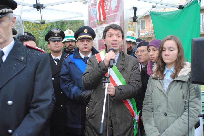 In occasione della “Giornata nazionale della memoria per i caduti civili e militari nelle missioni internazionali per la pace” questa mattina, alle 10 in punto, nonostante la pioggia battente, al parco Caduti di Nassiriya (via Trebbia, angolo via Massarotti), si è tenuta la cerimonia commemorativa davanti al cippo che ricorda i civili e i militari morti a causa di un attentato avvenuto ad una base militare italiana in Iraq il 12 novembre del 2003. Insieme al sindaco Gianluca Galimberti e ad altri esponenti della Giunta, hanno presenziato le massimi autorità civili e militari, tra le quali il presidente della Provincia Carlo Vezzini, il questore Vincenzo Rossetto, il comandante provinciale dei Carabinieri Ten. Col. Cesare Lenti, il comandante provinciale della Guardia di Finanza, Col. Alfonso Ghiraldini, e, in rappresentanza del X Reggimento Genio Guastatori, il Te. Col. Giovanni Petrocelli. Folta, nonostante la pioggia, anche la delegazione dei rappresentanti delle Associazioni Combattentistiche e d’Arma, tutte con i loro labari. Dopo l’Onore ai Caduti e il Silenzio, è avvenuta la lettura dei Caduti di Nassiriya. Per la prima volta hanno partecipato due allieve del Liceo “D. Manin” in rappresentanza degli studenti cremonesi che hanno partecipato all’ultima Marcia per la pace Perugia ed Assisi che hanno letto due poesie.