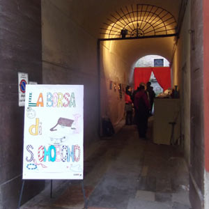 Nell’androne di ingresso alcuni volontari dell’oratorio di S. Agostino hanno organizzato una vendita benefica di oggetti, una rinnovata forma di “Borsa di S.Omobono”, adattata a questi tempi di crisi.