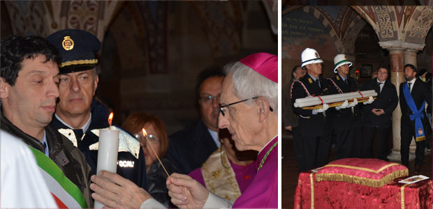 Si è ripetuta anche quest’anno la tradizione di S. Omobono per i cremonesi. In mattinata il fulcro delle celebrazioni è stata la Cattedrale, con il vicario generale, mons. Mario Marchesi, che all’inizio della liturgia ha ricordato che la festa patronale coincide quest’anno con il 50esimo di ordinazione sacerdotale del vescovo Lafranconi, da 13 anni a Cremona. In prima fila per la messa solenne delle 11 le massime autorità del territorio, tra di esse il prefetto Picciafuochi, il questore Rossetto, il presidente della Provincia Carlo Vezzini e il sindaco Gianluca Galimberti con il vice Maura Ruggeri e altri componenti della Giunta e del Consiglio Comunale. Il primo cittadino, in fascia tricolore, prima della Messa, alla presenza del Vescovo e dell’intero Perinsigne Capitolo della Cattedrale ha proceduto alla tradizionale offerta dei tre ceri a Sant’Omobono dinanzi all’urna conservate in cripta.