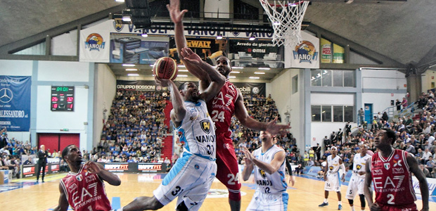 Nella foto Sessa, il match della Vanoli contro Armani al Paradi