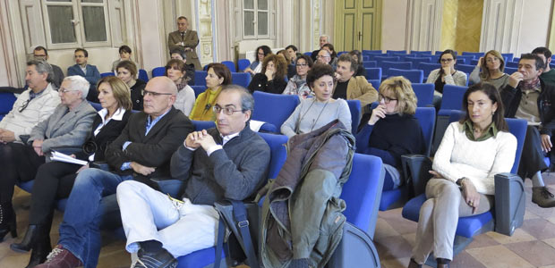Foto di Francesco Sessa (in piedi, da sinistra: il giudice Beluzzi, il presidente della sezione penale Pio Massa e la presidente Marini; seduti, da sinistra, l’assessore Galmozzi e il procuratore Dell’Osso)