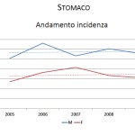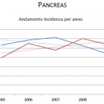 STOMACO E APPARATO DIGERENTE- – L’incidenza continua ad essere costante tra 2005 e 2009, mentre la mortalità è in nettissimo decremento, diminuita del 50% nei 15 anni considerati, in entrambi i sessi. La sopravvivenza a cinque anni è del 25%. Cauto ottimismo, ma senza abbassare la guardia, soprattutto per gli altri tipi di tumori dell’apparato digerente. Non per il tumore al pancreas che continua ad essere letale (sopravvivenza del 5% a cinque anni), con un aumento dell’incidenza molto evidente tra le donne. Anche in questo tipo di tumore, come per il polmone, il fumo entra in gioco. E anche il trend della mortalità è particolarmente negativo per le donne: tra altri e bassi negli ultimi 15 anni la curva è in netta salita, mentre tra gli uomini è costante. Costante sia tra gli uomini che tra le donne l’incidenza del tumore al fegato, mentre la mortalità è decrescente, in maniera più marcata, però, per le donne.