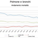 POLMONE E BRONCHI – Le donne hanno preso le cattive abitudini degli uomini, che invece le stanno abbandonando, per quanto riguarda il fumo. Mentre la curva dell’incidenza del tumore ai polmoni è in netta diminuzione tra i primi, è invece in crescita per le seconde: lo stesso andamento si vede anche nella mortalità, in maniera ancora più sensibile, tra 1998 e 2013. “Dove i fattori di rischio sono evidenti e si fa prevenzione – spiega il direttore sanitario dell’Asl, Raffaele Stradoni – si riesce ad incidere positivamemte. La campagna contro il fumo, ad esempio, funziona da diversi anni e sta mostrando risultati. Sul fronte della prevenzione primaria abbiamo intensificato la conoscenza del problema tra i ragazzi in età scolare e tra gli adulti fumatori, anche con visite nelle aziende ed incontri di counseling motivazionale”. La sopravvivenza a 5 anni si sta assestando al 10% tra gli uomini e al 18 tra le donne.