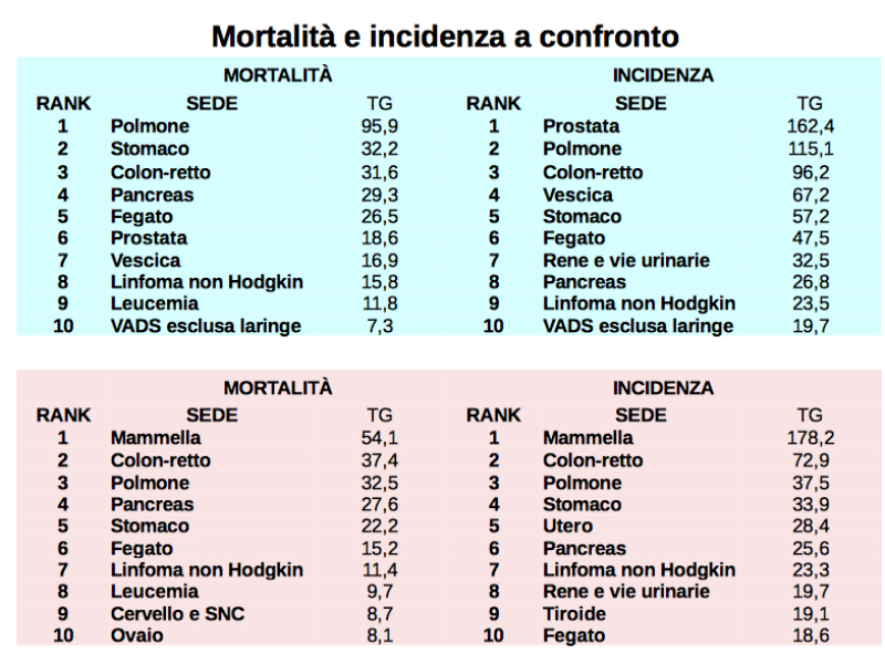 COLON RETTO E MAMMELLA – Sono le sedi per le quali l’Asl effettua una costante campagna di screening, con adesioni intorno al 50% nel primo caso. Sia incidenza che mortalità stanno diminuendo; la sopravvivenza è al 52 – 56% (uomini e donne). Succede anche per la mammella in maniera anche più sensibile. Da notare che più precocemente il caso viene individuato mediante gli screening, più aumenta la sopravvivenza delle donne colpite; questa si attesta sul 78%. Resta il fatto che nel quinquennio considerato in provincia ci sono stati 1600 nuovi casi.