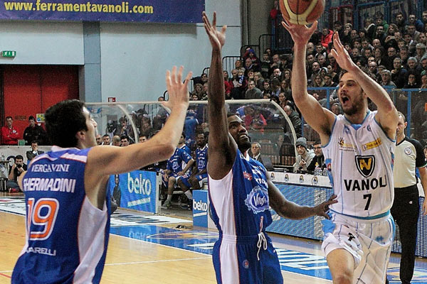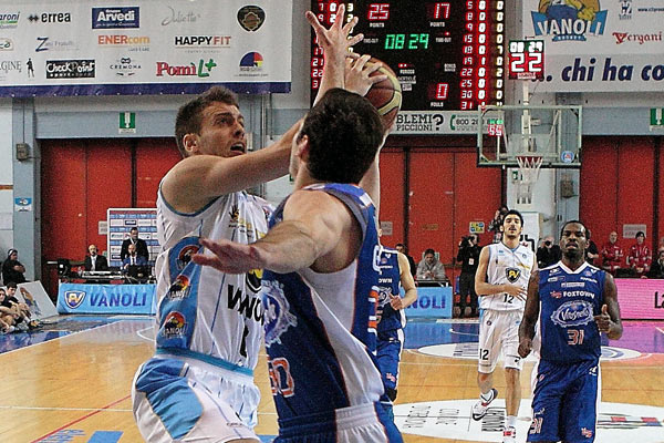 Il successo riportato al PalaRadi su Acqua Vitasnella Cantù per 71-63 ha dato la certezza che la squadra di coach Pancotto può ottenere la storica qualificazione. In difesa Bell e Cusin bloccano i lunghi canturini soprattutto Shermadini ed in attacco funzionano bene gli schemi che liberano proprio Cusin al tiro così che la Vanoli si porta sul 11-4 al 4’. I biancoblu falliscono tiri dalla lunga distanza e Cantù recupera 11-9. Clark riporta avanti i suoi e Sacripanti prova il doppio play in campo ma a Cantù nonostante l’ingresso di Eric Williams non riesce il sorpasso ed al 10’ il punteggio è 21-17. Gazzotti infila un paio di canestri ed una tripla di Ferguson e la Vanoli Cremona allunga 28-17 al 12’. Gli ospiti si riavvicinano sul 31-29 sfruttando dalla lunetta i falli commessi in difesa dai cremonesi. Non segna Hayes ma Clark e Bell danno punti ai padroni di casa e 36-29 al 18’ che riescono a mettere in pratica al meglio il loro gioco in attacco e vanno al lungo intervallo sul 41-29. Cremona affronta con pazienza la difesa a zona 2-3 canturina gestendo bene i ritmi ed al 25’ 54-36 con Cusin dominatore sotto le plance.