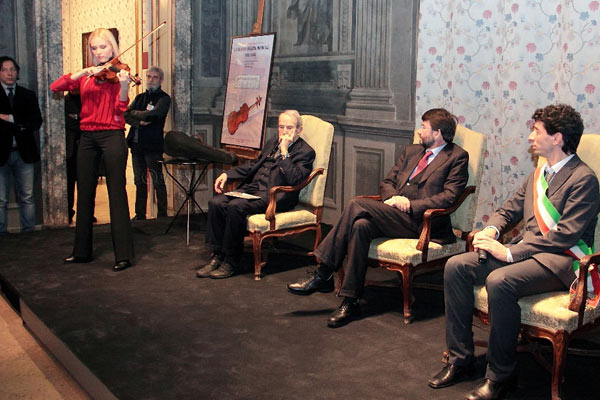 Franceschini nel suo incontro al Museo Civico ha parlato della opportunità di collegare cultura e turismo ricordando di aver annoverato Cremona tra le città dalla forte identità musicale in una sede prestigiosa come Vienna. “E’ giusto che ogni città, al di là di ogni sterile concorrenza, valorizzi le proprie peculiarità e le faccia conoscere. La storia di questo violino ci fa capire come a volte i messaggi arrivino attraverso la storia; la cultura è strumento per il dialogo e la conservazione della memoria. Questo violino mi auguro che girerà molto perchè le sue note esprimono molto di più di quello di un qualsiasi altro strumento musicale”. Tappa successiva al teatro Ponchielli e poi al Museo del Violino.