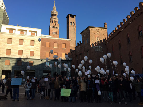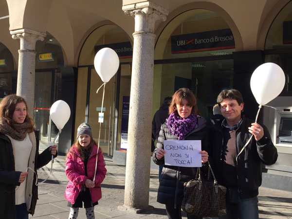 Erano presenti una cinquantina di persone alla manifestazione promossa in piazza Stradivari da un gruppo di cittadini cremonesi per dire forte e chiaro il proprio “no” al clima di violenza delle ultime settimane e soprattutto al corteo di sabato scorso, degenerato in una vera e propria guerriglia urbana. Tanti palloncini bianchi sono stati distribuiti a tutti i partecipanti, grandi e bambini, che li hanno lanciati tutti insieme verso il cielo in un simbolico segno di pace. “Cremona è la nostra città e non si tocca” era uno degli slogan dei manifestanti.