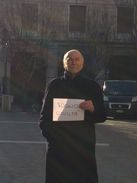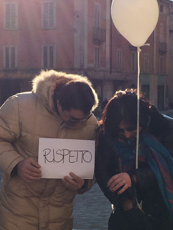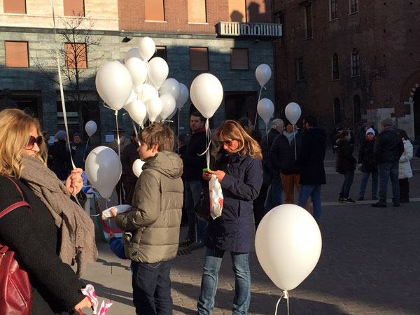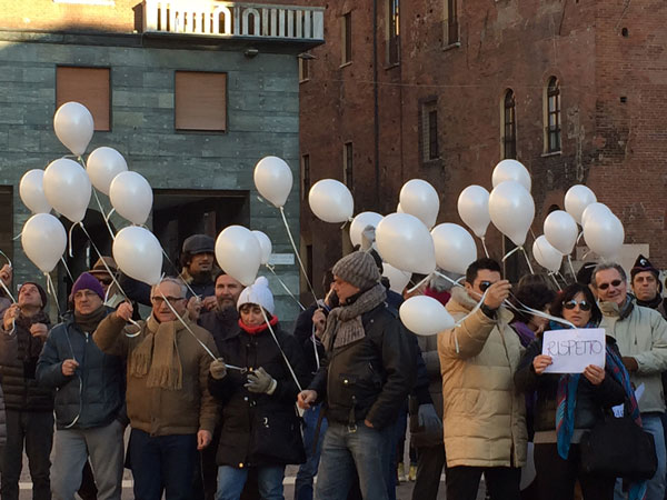 “E’ una manifestazione pacifica e assolutamente non politica – spiega Nicla Manzoni, della Onlus “Aiutare i bambini”, che insieme a Giuseppe Vigliotta ha organizzato l’evento -. Mi spiace per la polemica messa in piedi dal Comitato per la chiusura dei centri sociali nei nostri confronti. Avrei voluto che tutti insieme manifestassimo contro la violenza”. Molti erano anche i cittadini che reggevano dei fogli A4 con delle scritte inneggianti la pace e la non violenza.
