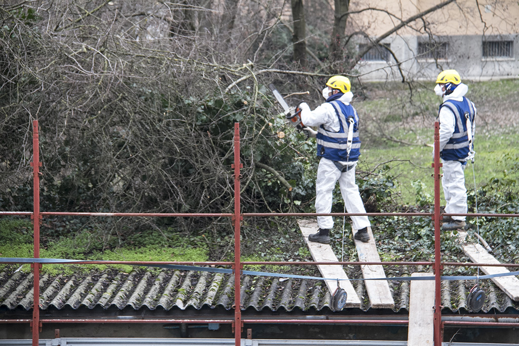 La situazione delle strutture, come più volte denunciato da Ona, era tale da ritenersi preoccupante per la pubblica salute, a causa delle presenza di fibre di amianto volatili e a fronte della la vicinanza alle abitazioni di edilizia residenziale pubblica e l’adiacenza ad un parco pubblico con giochi per bambini. La nevicata delle scorse settimana ha ulteriormente peggiorato la situazione, in quanto grossi rami di alberi sono crollati sui tetti dei garage, facendone addirittura crollare alcune parti.