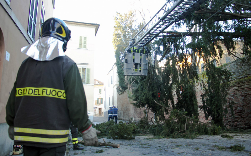 Altri interventi sono stati effettuati senza sosta per tegole e comignoli pericolanti e volati giù dai tetti rami caduti e ascensori bloccati. Oltre a tettoie, pezzi di lamiera, pali stradali divelti. Insomma un vero disastro, un’ennesima emergenza meteo dopo la inedita nevicata di inizio febbraio. Tra le zone della città più colpite dalle raffiche: via Panfilo Nuvolone, Bagnara, Battaglione. Alle 19 Polizia Locale ancora impegnata sul sagrato della chiesa di san Felice.