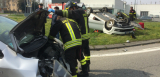 Scontro a innesto Trebbia-tangenziale Auto ribaltata, ma solo ferite lievi