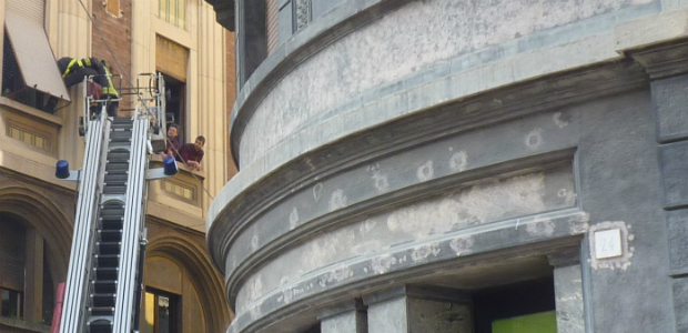 Uomo si sporge da finestra Passanti temono suicidio Stava solo pulendo vetro