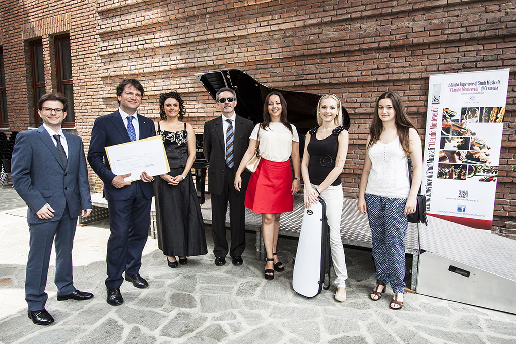 Gli studenti che hanno ricevuto il riconoscimento sono Lorenza Baldo (violoncello), Colomba Betti (viola), Yevheniya Lysohor (pianoforte), Andrea Nocerino (violoncello), Anastasiya Petrishak (violino). Questi i flash mob realizzati a sorpresa domenica mattina: alle ore 10,50 il suono del clarinetto dietro l’abside del Duomo, alle 11,10 musica in gruppo in piazza della Pace, alle 11,30 altra musica in gruppo in piazza Marconi, lato Consorzio agrario, alle 11,45 concerto finale in piazza Marconi, lato Museo del Violino.
