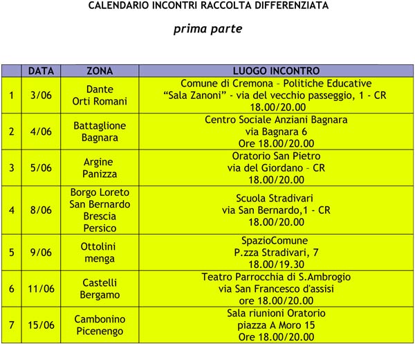 Proprio al fine di fugare gli ancora numerosi dubbi della cittadinanza, il Comune da il via proprio in questi giorni agli incontri pubblici nei quartieri interessati per illustrare il servizio. A questi incontri parteciperanno rappresentanti dell’Amministrazione comunale e della società di gestione. Primo incontro sarà proprio la sera del 3 giugno, con i residenti del quartiere Dante-Orti Romani. L’incontro si svolgerà in sala Zanoni (via del Vecchio Passeggio) alle 18.