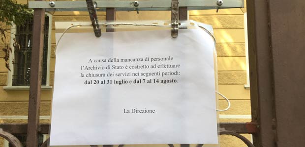 Carenza di personale, l'Archivio di Stato costretto a chiudere oltre due settimane