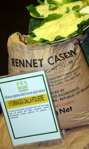 Con un chilo di latte in polvere si ottengono dieci litri di latte al prezzo di circa 20 centesimi al chilo che – sostiene la Coldiretti – è pari quasi alla metà di quanto costa agli allevatori produrre il latte fresco dall’allevamento con le mucche. Quelli che chiedono all’Unione Europea di produrre il “formaggio con la polvere” sono gli stessi che sottopagano il latte agli allevatori italiani con prezzi che non coprono neanche i costi dell’alimentazione del bestiame, ha affermato il presidente della Coldiretti Roberto Moncalvo. Una manovra che – spiega Moncalvo – fa comodo a chi vuol continuare ad importare prodotti dall’estero da spacciare come Made in Italy per la mancanza di un adeguato sistema di etichettatura sull’origine dei prodotti lattiero caseari. Il risultato è che dall’inizio della crisi hanno chiuso in Italia oltre diecimila stalle da latte con la perdita di posti di lavoro e di reddito, ma anche di un ruolo insostituibile di presidio del territorio.