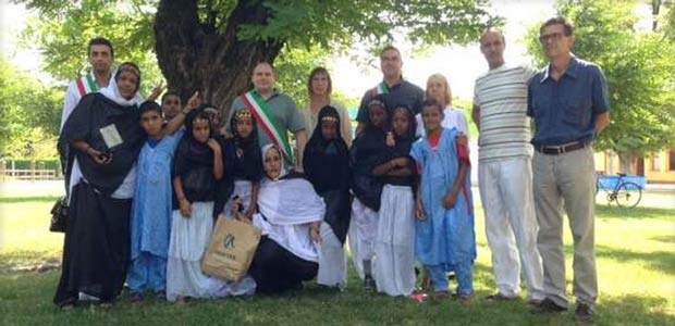 Nella foto, i bimbi sahrawi con accompagnatori e autorità di Scandolara, San Daniele, Cingia e Gussola