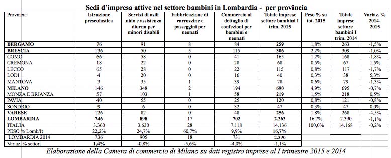 La provincia di Cremona sempre più attenta ai più piccoli: è uno dei pochi territori lombardi in cui cresce il numero di imprese attive nel settore dei bambini. In Lombardia sono 2.363 le imprese legate alla produzione di beni e servizi per l’infanzia attive al primo trimestre 2015, il 17% del totale italiano, in calo dell’1,1% rispetto all’anno prima. Nell’area provinciale cremonese si contano 67 imprese, fra istruzione prescolastica, servizi di asili nido e assistenza per minori disabili, commercio. La crescita rispetto all’anno precedente è dell’1,5%. Meglio solamente Lodi, con +5,3%. Tutte le altre, eccezion fatta per Monza e Brianza (+0,5%), fanno registrare cali o, nel caso di Sondrio, nessuna variazione.
