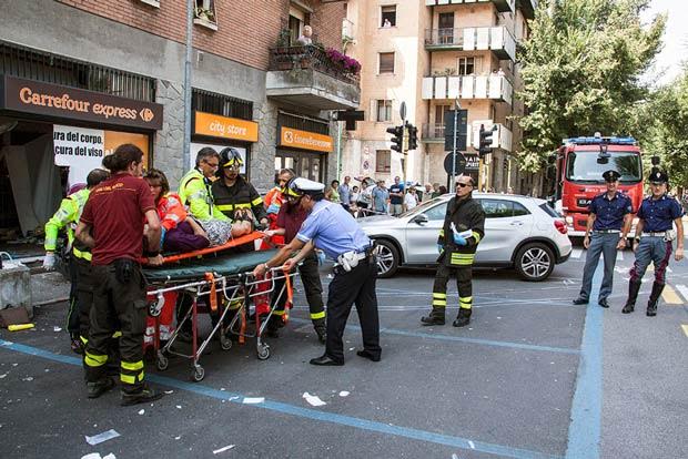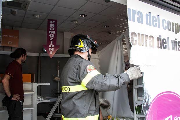 Sfonda vetrina del Carrefour e investe due pedoni Frattura alle gambe per cittadina americana