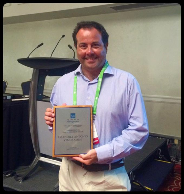 In occasione del settantacinquesimo meeting annuale dell’Academy of Management, il prof. Emanuele Vendramini, docente di Economia aziendale presso la facoltà di Economia e Giurisprudenza dell’Università Cattolica di Piacenza-Cremona e primo italiano premiato dall’Academy of Management, replica la straordinaria ‘performance’ ricevendo ben 2 premi. Il primo è un riconoscimento della divisione Public Management and No profit, una delle divisioni dell’ academy of management, per il lavoro svolto nel corso dell’ultimo anno come presidente della divisione. Il secondo ancora più prestigioso, è dell’ Accademia Mondiale di Management per, come si legge sulla targa, “capacità di leadership veramente eccezionali e per il servizio reso all’Aom”: si tratta di un riconoscimento mai attribuito ad un italiano e di cui sono stati insigniti pochissimi europei.