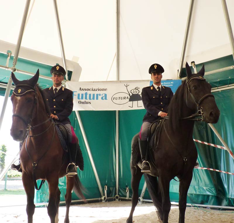 “L’arrivo del reparto a cavallo è stato voluto fortemente dal questore e per l’occasione abbiamo chiesto ospitalità all’associazione Futura, che ha risposto positivamente. Sono ben contento in qualità di rappresentate della polizia di ringraziare ufficialmente l’associazione per questa collaborazione e per la disponibilità a possibili ulteriori collaborazioni di questo genere, la presenza del reparto a cavallo a Cremona non è una presenza puramente scenica, tutt’altro, è finalizzata ad articolare il controllo del territorio in maniera diversa da quelle che sono le forme tradizionali”, ha dichiarato il commissario capo Nicola Lelario, che mercoledì pomeriggio, alle 15,30, ha rappresentato la Questura durante un incontro con la polizia a cavallo aperto ai ragazzi di Futura nel centro di via San Rocco.