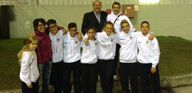 Gli atleti cremonesi insieme al presidente Coni, Oreste Perri