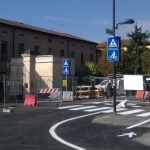 Archiviata per ora la pagina politica sull’utilizzo del nuovo sottopasso ferroviario, prosegue il lavoro di tecnici e politici in zona via Brescia, con la posa della segnaletica orizzontale che indica i percorsi ai ciclisti, categoria privilegiata, insieme ai pedoni, in questo ridisegno della viabilità che ha dovuto fare i conti con i limiti strutturali del sottopasso. La nuova segnaletica sta interessando non solo le zone più prossime al sottopasso, ma anche le vie laterali. In via san Bernardo sono state ultimate le delimitazioni della pista ciclabile che costeggia tutta la cancellata della scuola Stradivari, fino al passaggio a livello. Se le due ruote possono già ora sperimentare la nuova viabilità, che include la salita / discesa con pendenza 10% del sottopasso, le auto dovranno attendere ancora un po’ per testare la nuova infrastruttura (solo in entrata da periferia a centro città). La rotonda, al posto del semaforo, all’incrocio tra via S. Bernardo, via Brescia e via Esilde Soldi è già terminata, ma le due strade non sono ancora percorribili. Via Soldi, in particolare, lo resterà fino a novembre per i lavori ai sottoservizi e solo allora si potrà testare la nuova viabilità.