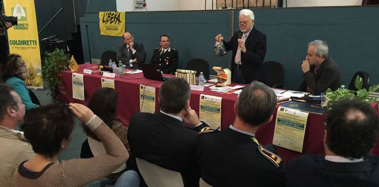 Moderato da Lorenzo Frigerio, coordinatore di ‘Libera Informazione’, l’incontro – al quale erano presenti Paolo Voltini, presidente di Coldiretti Cremona, e Tino Arosio, direttore della Federazione – ha visto i relatori evidenziare, ciascuno per la propria parte, le illegalità, gli inganni e le molteplici zone d’ombra che oggi ledono i diritti dei cittadini e danneggiano il Paese. Se il Comandante dei Nac Uguzzoni ha evidenziato contenuti e valore della quotidiana battaglia delle forze dell’ordine contro il finto Made in Italy, il Capo area di Coldiretti Manfredini ha illustrato vari esempi di ‘filiera del cibo opaca’, citando la battaglia che la prima Organizzazione degli agricoltori italiani sta conducendo nel segno della trasparenza, della tracciabilità dal campo alla tavola e della necessità di giungere all’obbligo di indicazione dell’origine in etichetta per tutti i prodotti agroalimentari.