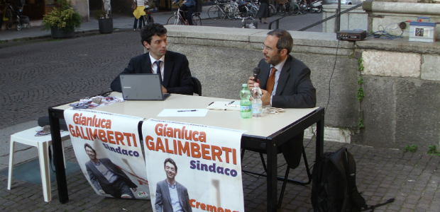 Ambrosoli a Cremona nel 2014 durante la campagna elettorale di Galimberti