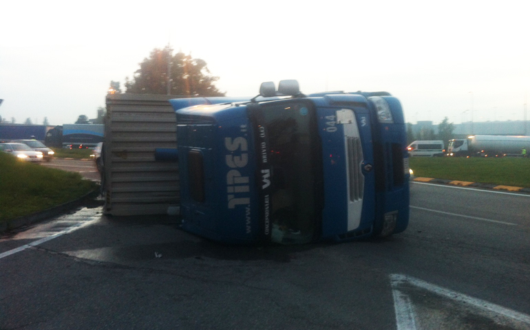 Mezzo pesante si ribalta in tangenziale Un ferito e traffico in tilt