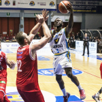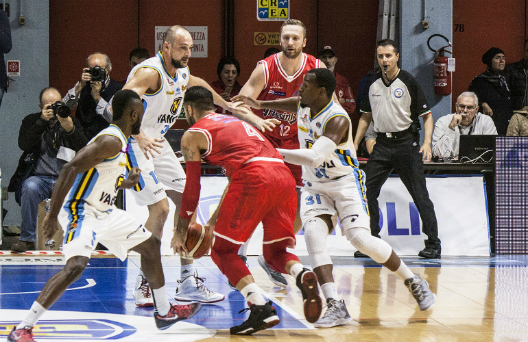 La Vanoli Cremona rinfrancata dopo il successo sul Torino, blocca al Palaradi la marcia di una big del campionato, la Grissin Bon Reggio Emilia per 68-61. Un successo che rilancia le quaotazioni della formazione di coach Pancotto che ora ha il morale alto e può davvero dire la sua parola nel prosieguo della stagione. Due assenze importanti: Vitali per la Vanoli e Kaukenas per i reggiani. Al 5’ la Vanoli ha centrato un solo canestro e Reggio Emilia va a più 9 11-2. Prende coraggio la Vanoli che con Washington e Adegboye si porta prima in scia e poi in testa 15-14 con canestro di Biligha al 10’. Fallo tecnico fischiato a coach Menetti per proteste e la Vanoli si porta avanti più 6 sospinta da McGee. Biligha commette il terzo fallo e viene sostituito con Cusin. Lavrinovic si fa carico della squadra e fa valere la sua fisicità ed esperienza ma la Vanoli Cremona ha da Adegboye e Washington i punti che la tengono in testa 34-30 al 20.’ Al 24’ i biancoblu chiudono bene in difesa ed ottengono il massimo vantaggio con triple di Turner e di Adegboye 45-34. La Grissin Bon tira molto dalla lunga e media distanza con scarse percentuali contrariamente alla Vanoli che allunga 53-39 al 28’. Insiste Cremona che si porta sul 57-40 e 57-43 con tre tiri liberi. La difesa di Reggio Emilia stringe le maglie e diventa più spigolosa. La Vanoli è determinata e non cede il passo sul 59-45 al 34’. Washington commette il quarto fallo ma resta sul parquet. Gli emiliani recuperano qualcosa 61-52 al 37’. Cusin si fa valere in attacco e difesa ed il pubblico lo incita dopo una pregevole stoppata su Della Valle. A due minuti dalla fine una tripla di Wassinghton fa vedere lo striscione d’arrivo ai padroni di casa. 66-57 al 39’ e Reggio praticamente è sulle gambe e getta la spugna.
