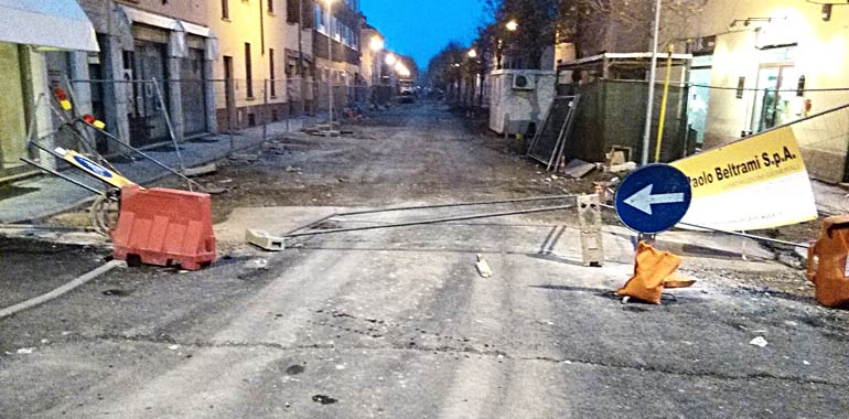 Ma forse i residenti si sono stancati di aspettare, o forse semplicemente la scorsa notte c’era in giro qualcuno che voleva creare problemi. Di fatto le transenne sono state divelte e gettate a terra, così come i cartelli dei lavori, sul lato della via che si incrocia con via Brescia. Come se non bastasse, sono apparse anche delle scritte, poi cancellate, contro il sindaco e contro l’azienda che svolge i lavori. Il primo a scoprire la situazione è stato il proprietario del bar Lo Stregatto, Michele Gerevini, che con un post su Facebook ha commentato duramente l’accaduto. “Vandalismo puro” ha scritto. “Non so chi possano essere stati i fenomeni a commettere una porcheria del genere. Va bene il dissenso va bene tutto, però così no. Non ci posso stare. Non bastava la provocazione di un cantiere infinito che ha messo in ginocchio un quartiere. Questo è un colpo basso”.