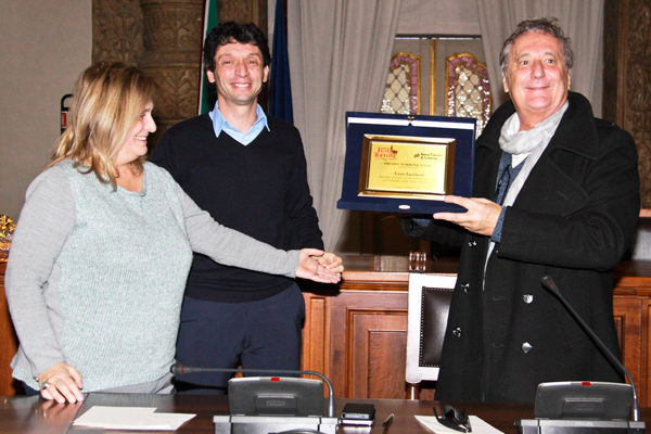 Il premio è stato consegnato nella sala Quadri del palazzo comunale. Poi l’artista ha salutato il suo pubblico dal palco centrale di piazza del Duomo.