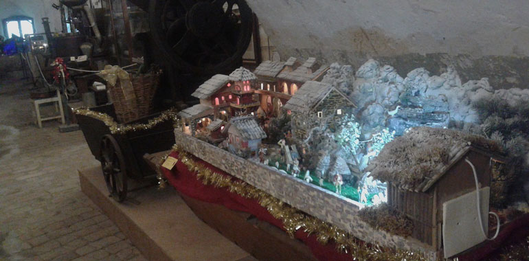Come il Presepe nella botte con bottigliette mignon come personaggi e il Presepe nel mulino con la riproduzione perfetta del mulino con ruota idraulica e personaggi in movimento (sezione ‘L’uomo e la trasformazione delle materie’), il Presepe nel tronco e il Presepe nell’acquario (sezione ‘L’uomo e il fiume’’), i Presepi tradizionali realizzati in una carriola o in una marnèta, la vasca in legno dove si impastava il ‘péstum’, trito di carni e spezie per l’insaccatura dei salami (sezione ‘L’uomo e la campagna’). Ci sono poi Presepi con varie ambientazioni, da quelle tradizionali a quelle fantastiche con i personaggi ricavati da bulloni. Gli effetti elettronici di luce giorno-notte che quest’anno sono stati ampliati piaceranno sicuramente ai più piccoli.