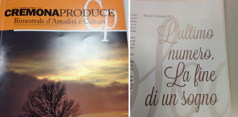 Se ne va un pezzo di storia e di cultura della nostra provincia. Con l'ultimo numero del 2015, arrivato in questi giorni in edicola, chiude il bimestrale “Cremona Produce” voluto e fondato da Sandro Uggeri nel 1968.