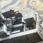 Sono in corso di installazione da questa mattina – 1 febbraio – le lancette e i dischi dell’orologio astronomico del Torrazzo, dopo la sistemazione dei meccanismi che regolano i movimenti. Gli addetti dell’Eurotecno stanno operando con due gru, una dotata di piattaforma aerea che consente agli operai di lavorare in quota (altezza massima 63 metri); un’altra attrezzata con ganci e tiranti per issare le varie parti che compongono lo spettacolare meccanismo esterno dell’orologio di epoca cinquecentesca. Per prima è stata rimessa in posizione la lancetta del drago, quella che provocava problemi agli ingranaggi: è questa la lancetta che gira più lentamente di tutte, compiendo i 360 gradi nell’arco di oltre 18 anni in corrispondenza dei movimenti lunari. Segue la lancetta del Sole, che segna i 365 giorni dell’anno di rivoluzione terrestre e successivamente altre due, una che indica la rotazione terrestre, l’altra che segna le ore, intercalate dai dischi. Quello più piccolo in particolare, in bronzo, è lavorato a sbalzo e riproduce il plansifero terrestre, così come era immaginato nel Cinquecento. Inizialmente sia questo che quello più ampio erano dipinti in modo che le immagini potessero essere viste dal basso, coloritura oggi scomparsa, così come non è tornata, dopo questa operazione di aggiustamento, l’originaria doratura delle lancette, che un tempo brillavano in lontananza.