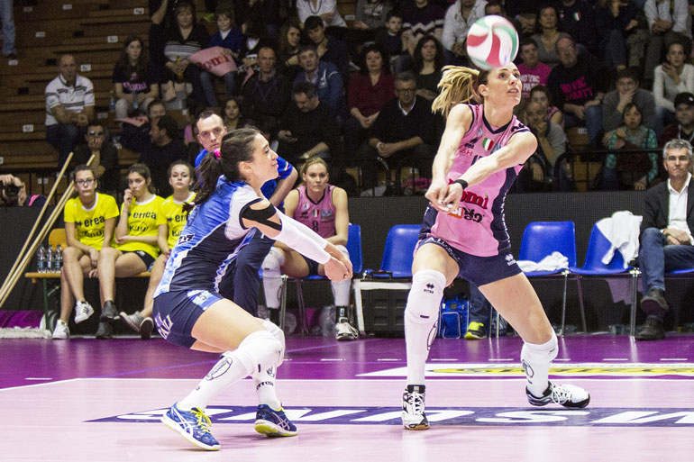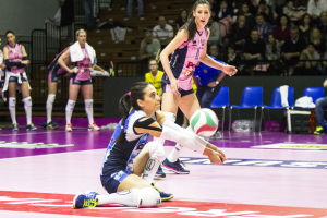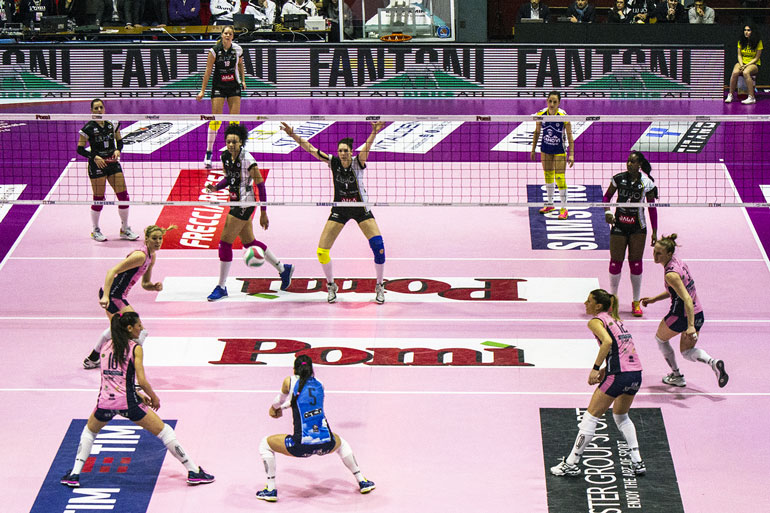 PRIMO SET – Con gli ace di Kozuch prima e di Tirozzi poi, le rosa fanno gli onori di casa: il primo time out lo chiama Beltrami quando il tabellone segna 7-4. Modena risale e complice un errore di Tirozzi passa a condurre: 10-11. Il capitano rosa sfrutta le mani del muro emiliano per tenere Casalmaggiore in scia: 13-15. Diouf risolve il punto più intricato dell’avvio: le risponde il muro di casa, con Stevanovic e Gibbemeyer in successione: 16-16. Il 16-18 manda in visibilio Beltrami. Kozuch s’incarta, Barbolini la sostituisce con Matuszkova che risponde subito presente: 19-21. Muro a uno della 18 rosa su Horvath: 21-22 e Beltrami spende un altro time out. Ancora Matuszkova per il 23-23. Il punto decisivo è di Modena: Horvath respinge Stevanovic per il 23-25.