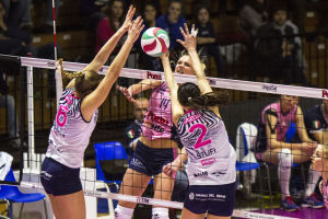 TERZO SET – Si viaggia a braccetto e la Pomì si accontenta anche dell’ace di Kozuch, benedetto dal nastro, per agganciare l’11-11. Stevanovic mura Nikolova: 14-13 e Chiappafreddo chiede il time out. Il botta e risposta prosegue e si arriva sino al 20-20. Tirozzi fa 21, un errore di Alberti vale il 22 rosa. Il 23esimo è di Stevanovic, ma la Savino del Bene resta incollata: il pari è di Nikolova. Stufi mura Piccinini, che converte poi una ricezione peccaminosa nel punto del 24-24. Ace di Cambi, ma il 3-0 è un’illusione. Nikolova e una fast out di Gibbemeyer consegnano il parziale a Scandicci: 25-27 e 2-1.