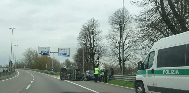 Paura in tangenziale nella tarda mattinata di mercoledì, dove due auto sono rimaste coinvole in un incidente all’altezza dello svincolo di immissione verso via Brescia. Un impatto notevole, che ha provocato il ribaltamento di una delle due vetture. Gli agenti della Polizia Municipale, intervenuti sul posto insieme ai soccorritori del 118, stanno cercando di chiarire la dinamica del sinistro. Fortunatamente nessuno dei due coinvolti (un 54enne e un 77enne) è rimasto ferito gravemente, anche se entrambi sono stati trasportati al Pronto Soccorso per essere visitati.