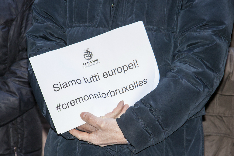 Oggi pomeriggio, nel Cortile Federico II di Palazzo Comunale, si è svolto un presidio di istituzioni, forze politiche, associazioni e cittadini “per condannare l’odio insensato che ha colpito l’Europa, per ricordare le vittime di Bruxelles e per riaffermare l’importanza della democrazia e dell’Europa” evidenzia il sindaco Gianluca Galimberti.